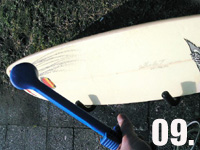 01.スタンド使用時デッキ面を下に向ける事で、太陽光によるワックスの溶解を防止。